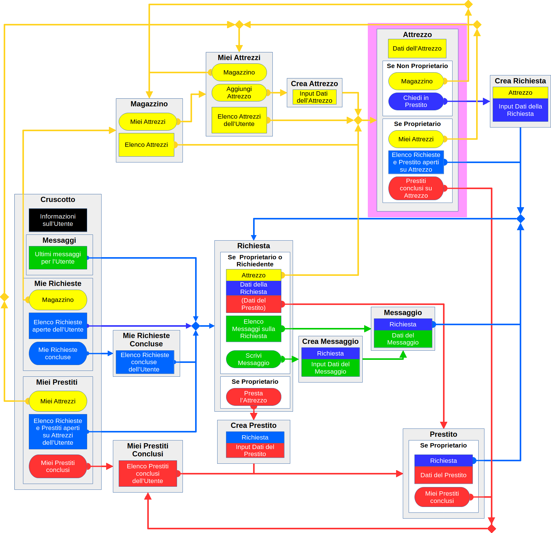 | un comando per tornare a "Miei Attrezzi" ed un comando "Prestiti conclusi sull'Attrezzo" per vedere la storia dei prestiti sull'Attrezzo | un comando per tornare a "Magazzino" ed un comando "Chiedi in prestito " per chiederlo in prestito |