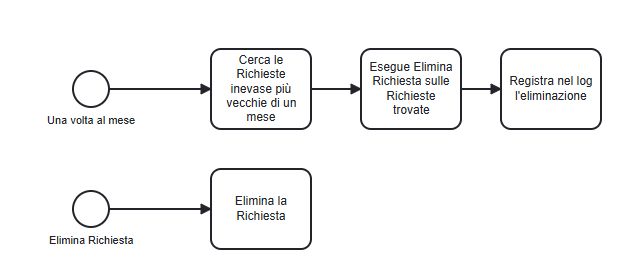 L'eliminazione vera e propria è eseguita dalla procedura "Elimina_Richiesta_Vecchia", disegnata nello stesso foglio della precedente:
